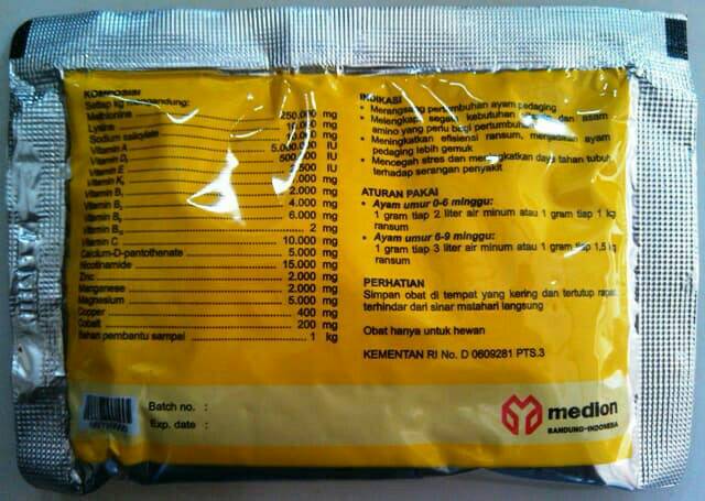 Berat badan ayam lambat bertambah. Neobro dapat membantu menggemukkan ayam broiler karena neobro mengandung multivitamin yang lengkap ditambah dengan mineral dan asam amino . Dokter, saya mau tanya apakah efek samping dari kesalahan pemberian obat yang disebabkan oleh kesalahan diagnosa? Neobro adalah serbuk larut air yang mengandung multivitamin (a, d, e, k, b1, b2, b6, b12 dan c), mineral dan asam amino. Gak masalah mas mungkin bukan vitabro tapi neobro,asal sering di .